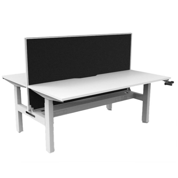 RAPIDLINE BOOST CRANK BACK TO BACK WORKSTATION WITH CABLE TRAY AND SCREEN 1500 X 1500 X 705MM NATURAL WHITE TOP AND WHITE SATIN FRAME