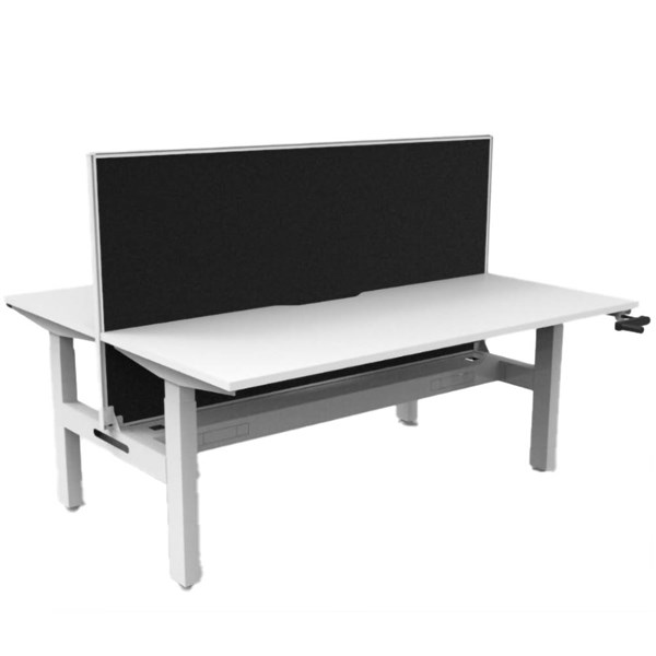 RAPIDLINE BOOST CRANK BACK TO BACK WORKSTATION WITH CABLE TRAY AND SCREEN 1800 X 1500 X 705MM NATURAL WHITE TOP AND WHITE SATIN FRAME