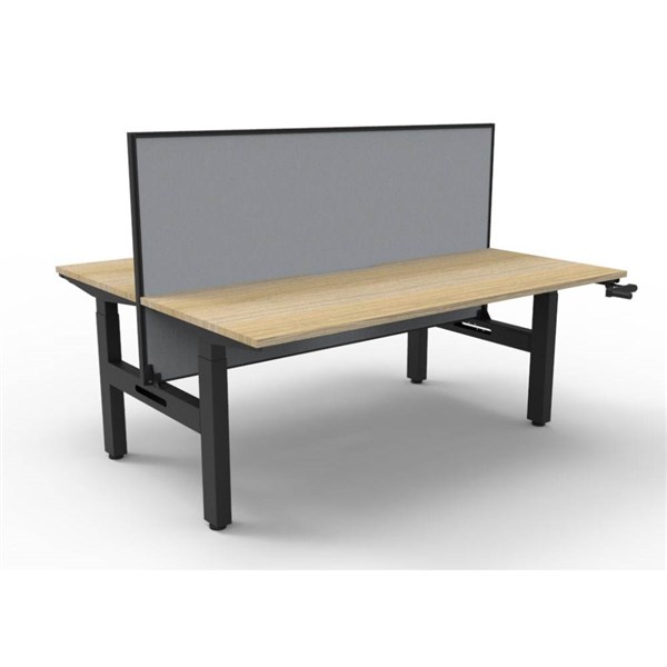 RAPIDLINE BOOST CRANK BACK TO BACK WORKSTATION WITH SCREEN 1500 X 1500 X 705MM NATURAL OAK TOP AND BLACK SATIN FRAME