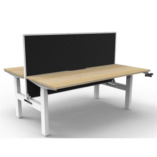 RAPIDLINE BOOST CRANK BACK TO BACK WORKSTATION WITH SCREEN 1500 X 1500 X 705MM NATURAL OAK TOP AND WHITE SATIN FRAME