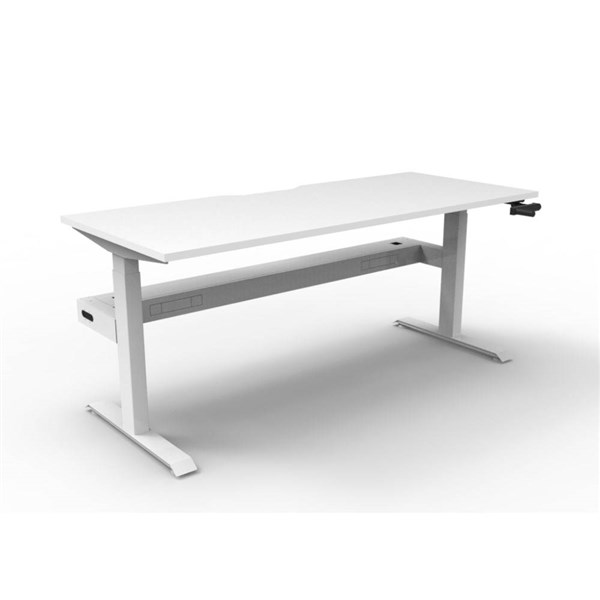 RAPIDLINE BOOST CRANK SINGLE SIDED WORKSTATION WITH CABLE TRAY 1500 X 750 X 705MM NATURAL WHITE TOP AND WHITE SATIN FRAME