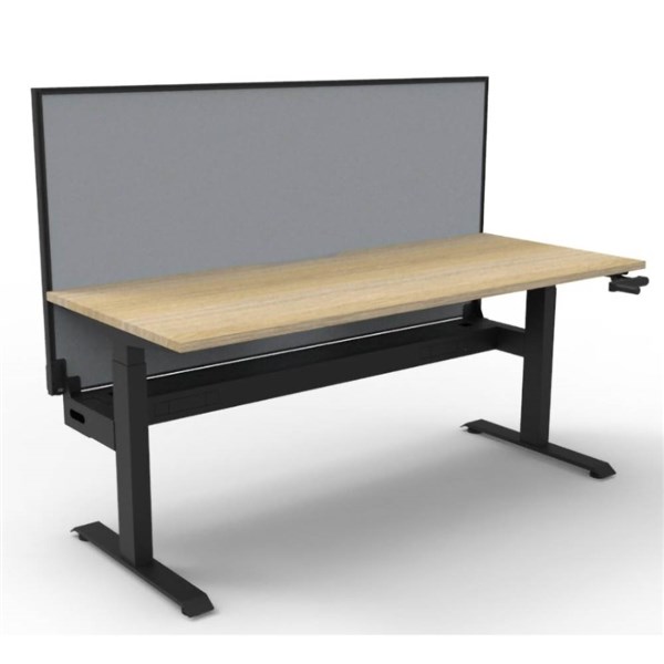 RAPIDLINE BOOST CRANK SINGLE SIDED WORKSTATION WITH CABLE TRAY AND SCREEN 1500 X 750 X 705MM NATURAL OAK TOP AND BLACK SATIN FRAME