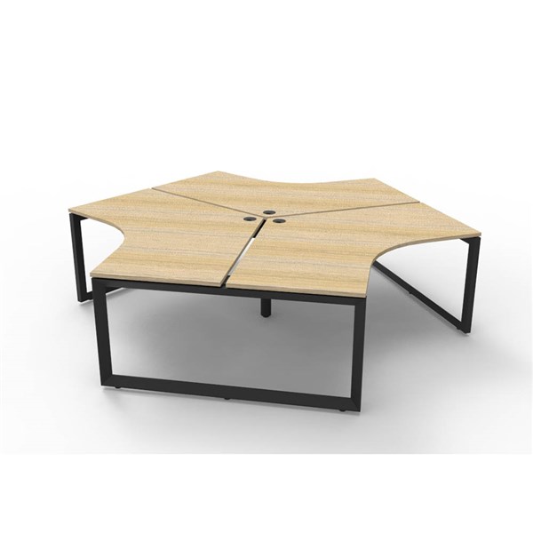 RAPIDLINE DELUXE INFINITY 120 DEGREE WORKSTATION LOOP LEG 3 PERSON 2866W X 730MM NATURAL OAK TOP AND BLACK P/C FRAME
