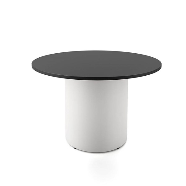 RAPIDLINE ROUND DRUM BASE TABLE 1200 X 730MM BLACK TOP AND WHITE P/C FRAME