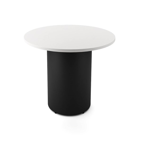 RAPIDLINE ROUND DRUM BASE TABLE 900 X 730MM NATURAL WHITE TOP AND BLACK P/C FRAME