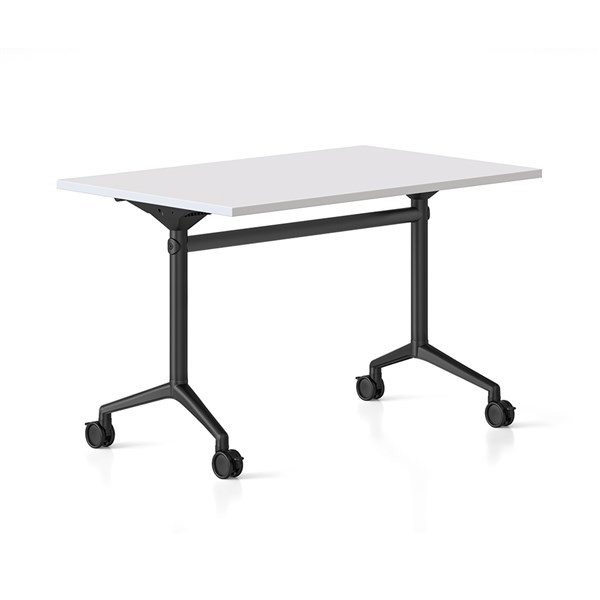 RAPIDLINE TYPHOON FLIP TOP TABLE 1500 X 750MM NATURAL WHITE TOP AND BLACK P/C ALL OVER FRAME