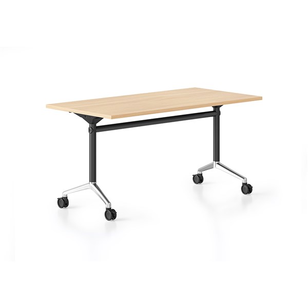 RAPIDLINE TYPHOON FLIP TOP TABLE 2100 X 750MM NATURAL OAK AND BLACK P/C POLISHED ALUMINIUM FRAME