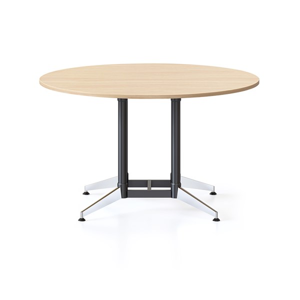 RAPIDLINE TYPHOON MEETING TABLE ROUND 1500 X 750MM NATURAL OAK AND BLACK P/C POLISHED ALUMINIUM FRAME