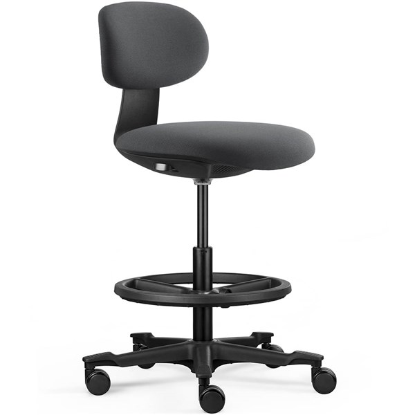 The YOYO Stool is a height-adjustable sit-stand chair. The moulded foam seat and back and the nylon base with castors ensure user comfort and easy mobility