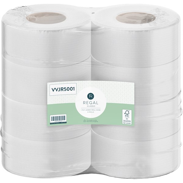 REGAL CLASSIC JUMBO TOILET ROLL 1-PLY 500M PACK 8