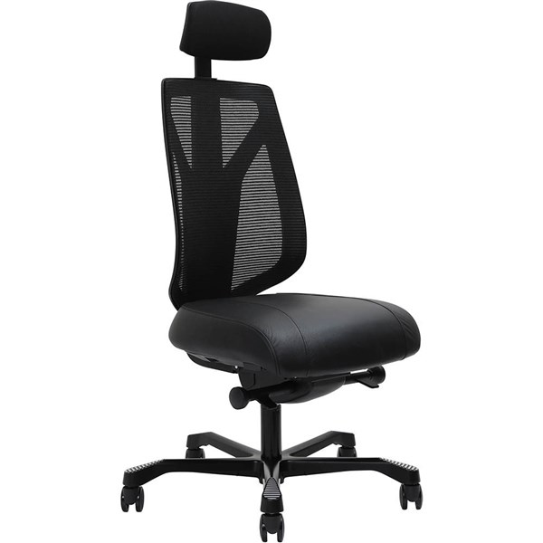 SERATI HIGH MESH BACK CHAIR PRO-CONTROL SYNCHRO 2-D HEADREST NO ARMS BLACK ALUMINIUM BASE FOOTPLATES GABRIEL FIGHTER BLACK FABRIC