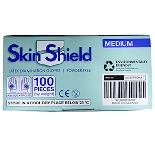 SKIN SHIELD LATEX EXAMINATION GLOVES MEDIUM CREAM BOX 100