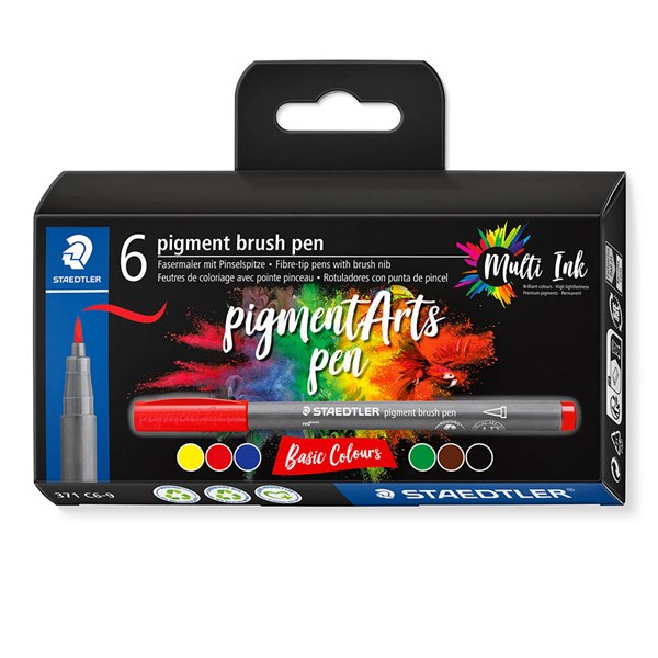 STAEDTLER PIGMENT BRUSH PEN 371 BASIC COLOURS PACK 6