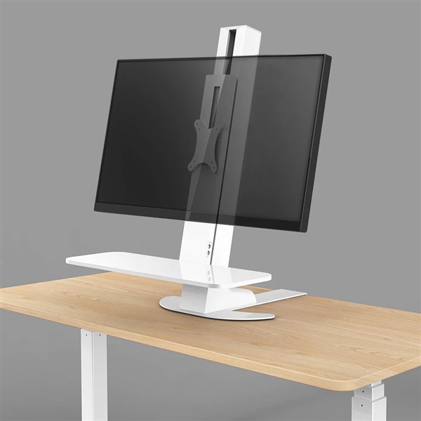 The Powerlator electric height adjustable desktop is the ideal solution for single monitors, narrow desks, reception areas or any workstation