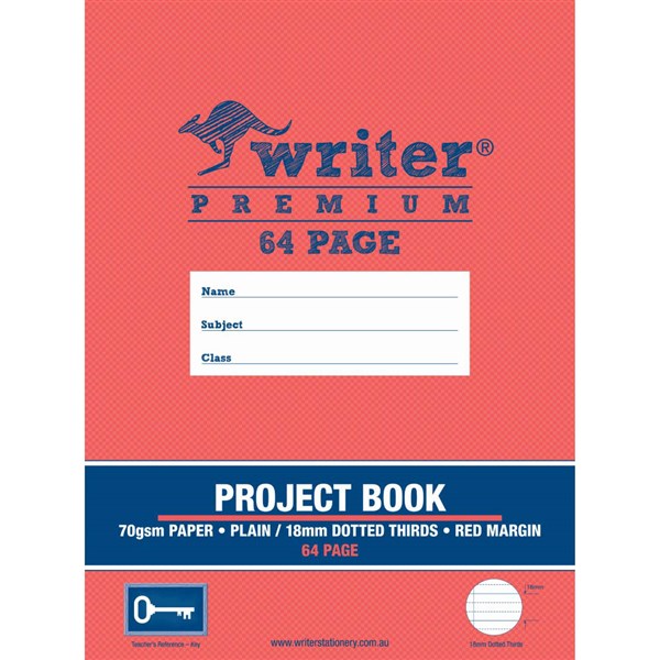 WRITER PREMIUM PROJECT BOOK 18MM PLAIN/DOTTED THIRDS 70GSM 64 PAGE 330 X 240MM KEY